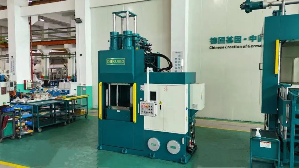 Before rubber material is injected into the mold and undergoes heating and vulcanization, it must first be transported by the screw and temporarily stored in the injection barrel. Effective temperature control during transportation and storage is critical. If the temperature is too low, it can cause feeding difficulties, poor flow, and surface marks. Conversely, if the temperature is too high, it may lead to scorching or premature vulcanization of the material. Proper temperature management, achieved through Dekuma’s temperature oil system, facilitates optimal transport, flow, and uniform temperature of the rubber material.